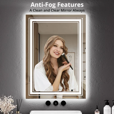 - [Dual Light Source: Frontlight + Backlight] This bathroom mirror features a dual light source design, incorporating both front and back lighting. Its brightness is ideal for various tasks such as applying makeup, skincare, shaving, and getting dressed, making it an excellent companion for your bathroom.