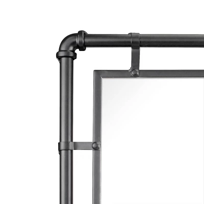 Add some Industrial flare to your home decor with Stonebriar’s 29.1″ x 16.7″ rectangle metal decorative wall mirror. This unique mirror features a rustic black metal pipe frame with a smooth matte painted finish. Mirror measures 29.1 inches in height, 16.7 inches in width, and 1.1 inches in depth. The glass mirror section alone measures 24.1 inches in height and 11.5 inches in width. It is the perfect size to use as a vanity mirror in the bathroom or as an accent mirror in the living room, bedroom, hallway, or entryway. Mirror comes with 2 attached keyhole hangers on the back and is easily installed with screws or wall hooks (not included). Buy your Stonebriar rectangular black metal pipe hanging wall mirror today and instantly enhance your home decor!