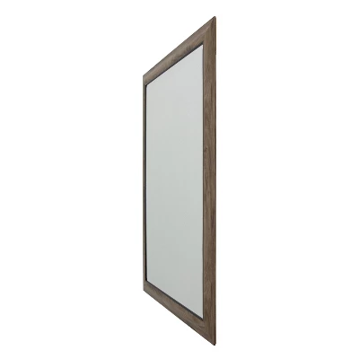 A gray wooden frame with black trim frame borders this charming mirror presented by Yosemite Home Décor. This design is both neutral and pleasant. It will compliment your home fabulously with its ability to pair well with various decor styles. The beveled glass allows for more light, making rooms appear larger and brighter. Bring it home to use and enjoy with your friends and family.