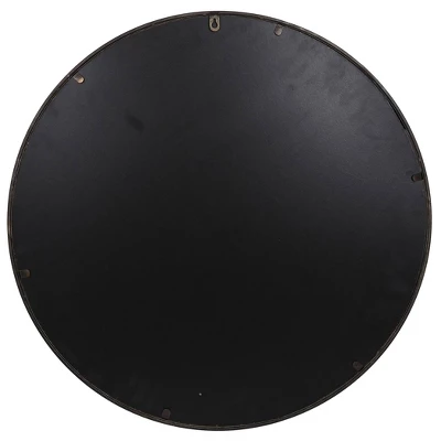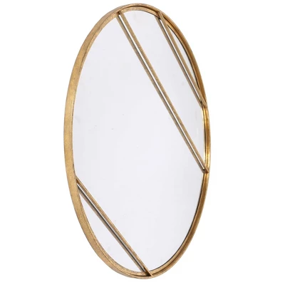 The Line Accent Mirror by StyleCraft offers a clean geometric design with creative detailing that fits perfectly into modern decor. This metal round wall mirror is finished in distressed gold and features diagonal line elements that enhance the shape. Include this accent mirror in the entryway, hallway, or bedroom decor for a polished look.