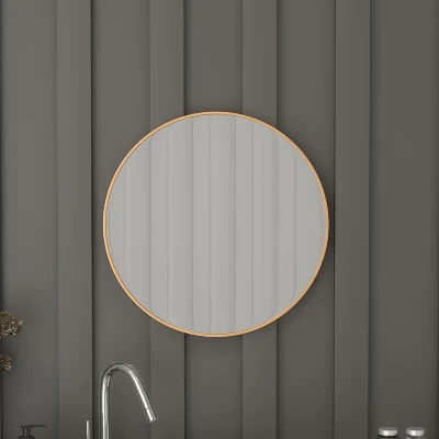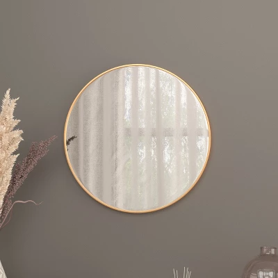 Make a statement accenting any wall in your home with this luxurious round mirror featuring a sleek black metal frame. This accent mirror showcases a framed design that helps add both a rustic and contemporary touch to your space. Whether you use this framed mirror in your bathroom, living room or above your fireplace mantel, you’ll love the warm and welcoming style it brings.