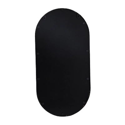 - •The oblong reflective glass panel is securely encased in the black metal frame