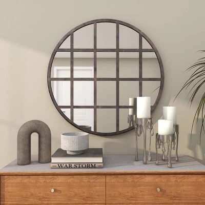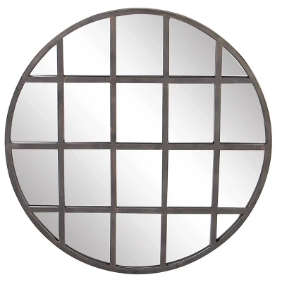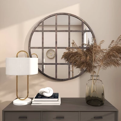 - This wall mirror decor has round shape and grid pattern
