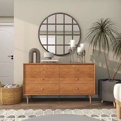 - Framed wall mirror is made of a combination of iron, glass, and MDF material