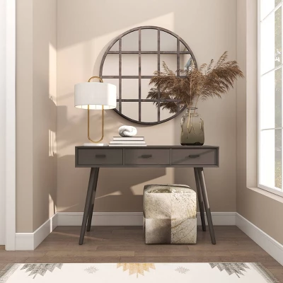 Display in smaller rooms or windowless rooms to make your space feel more open. This item ships in 1 carton. Can be hung vertically using the metal rings on the back; nails and screws not included. Suitable for indoor use only. This item ships fully assembled in one piece. This is a single black colored entryway mirror. Industrial style.