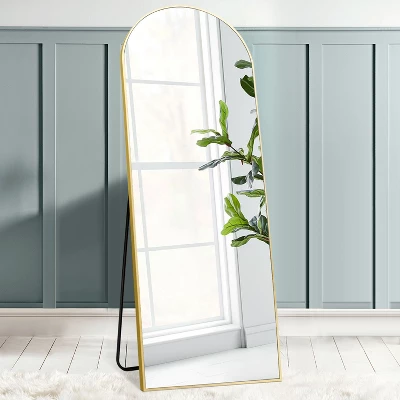 23.5 in.W size is enough for you to see your entire figure in a single glance and bring you light, beauty, and confidence.When the bracket is opened and the mirror is placed on the ground, triangular support is formed between the bracket and the mirror, which is very stable and the mirror is free to stand anywhere.This mirror creates a modern look while giving a feeling of space to any room.
