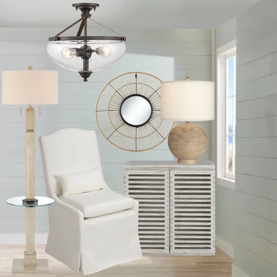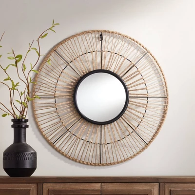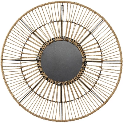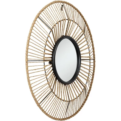 Black accents create definition and detail for this traditional round wall mirror. From Dahlia Studios, the mirror is a petite round set within a wide frame. The frame features intriguing spokes, many of which are wrapped in natural hemp rope that brings casual, coastal energy. The back of the mirror includes a keyhole hanger for easy installation.