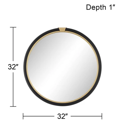Bring a sophisticated touch to your living area or bedroom with this modern round wall mirror. From Noble Park, the mirror features flat glass with a layered frame with an inner gold ring and thicker black outer ring. A gold bracket defines the apex of the mirror, adding a glam touch to any room.