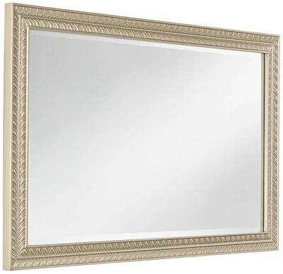 - Champagne gold finish over solid wood frame. MDF wood backing. Non-beveled glass.