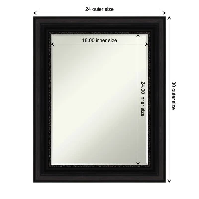 - MIRROR DETAILS: This mirror features premium glass for a clear, undistorted image and is finished with a petite 1/2-inch beveled edge which is more delicate than a traditional bevel. The overall size of this bathroom mirror measures 23.5 x 29.5 inches, including the frame. Its reflective area measures 18 x 24 inches.