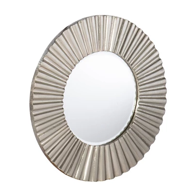 Liven up your wall décor with the Aiden Lane Pineder Round Decorative Mirror. Silver cladding decorates the round frame, while the center mirror provides convenience in your entryway or living area. Hang this modern décor piece in your hallway for a bold design, or place in your dining room to add sophisticated style to dinner parties and brunches. Take your contemporary décor up a notch with this hanging wall mirror.