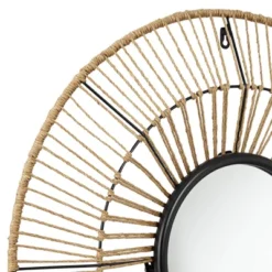 Newhill Designs Jefferson Round Vanity Wall Mirror Vintage Rustic Black Iron Natural Hemp Rope Frame 27 1/2″ Wide For Bathroom Bedroom Living Room
