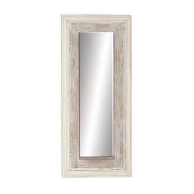 Display in bedroom as a vanity mirror either hung or leaning against a wall or in your living room with an accent table to open up your space. This item ships in 1 carton. Can be hung vertically using the D-rings on the back; nails and screws not included. Suitable for indoor use only. This item ships fully assembled in one piece. This is a single white colored entryway mirror. Farmhouse style.