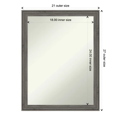 - MIRROR DETAILS: This mirror features premium glass for a clear, undistorted image and has a non-beveled surface to maximize the viewing area. The overall size of this bathroom mirror measures 20.5 x 26.5 inches, including the frame. Its reflective area measures 18 x 24 inches.
