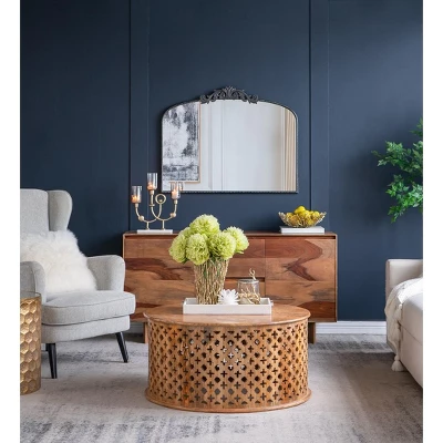 This classic arched mirror is baroque inspired with an ornate top and exquisite detailing for a vintage inspired look, perfect for placing on a console leaning wall in an entryway or on a fireplace mantel or dresser for a luxurious visual effect.