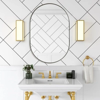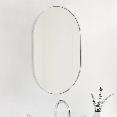 Add a touch of modern elegance to your bathroom or living space with this 20″x 30″ Modern Oval/Pill Shaped Wall Mount Mirror. Crafted from high-quality materials, this mirror features a sleek and stylish frame that will complement any contemporary decor. The non-beveled edge mirror is made from shatter-proof glass for added safety and durability.This mirror can be mounted horizontally or vertically depending on your space and preference, and it comes with all the necessary hardware for easy installation right out of the box. Whether you want to brighten up your bathroom or add an accent piece to your bookshelf, this modern oval/pill shaped wall mount mirror is the perfect addition to your home decor.