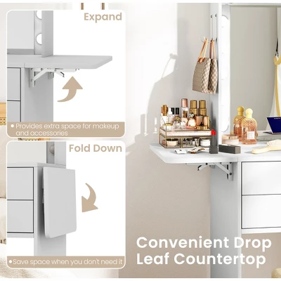 - Spacious Storage Solution: Equipped with 2 open shelves, 2 side hooks, a spacious tabletop, a drop leaf countertop and 2 sliding drawers, this makeup dressing table provides large storage space to organize all your beauty essentials with ease.