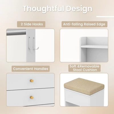 - Comfortable & Thoughtful Design: This vanity set includes a cushioned stool that provides optimal comfort while you prepare for the day or a night out. The zippered cushion cover is easy to remove and wash by machine. To enhance stability and security, the vanity desk features an anti-toppling device.