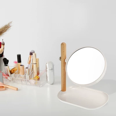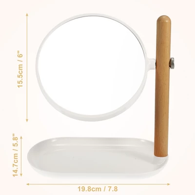 - Mirror size: diameter 6 inch, total height: 8.5 inch, tray size:7.8 x 5.8 inch