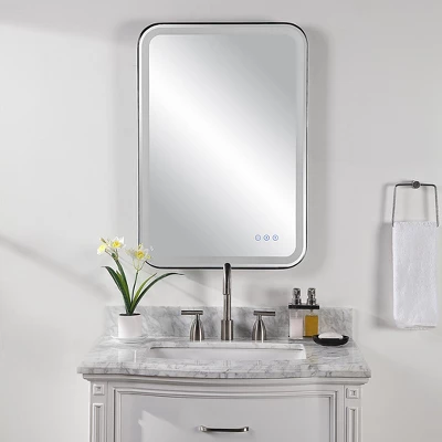 - Polished edge mirror with integrated frosted LED strip for clean illumination