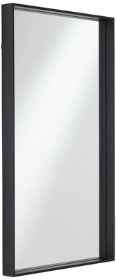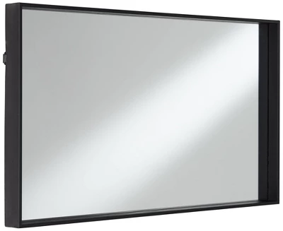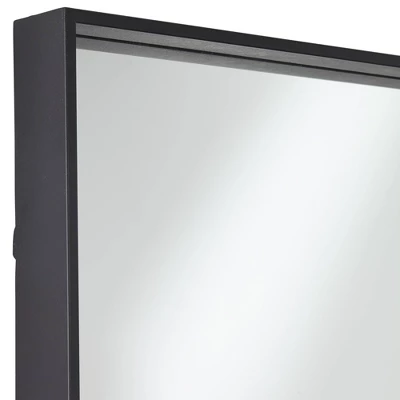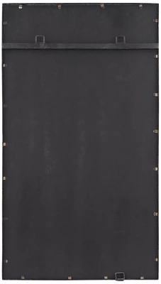 Understated design ensures a versatile look and feel for this modern metal wall mirror. Its rectangular silhouette featured flat glass surrounded in a matte black finish frame of straight, slim lines. Constructed in iron, the mirror is complete with attached D-ring hangers.