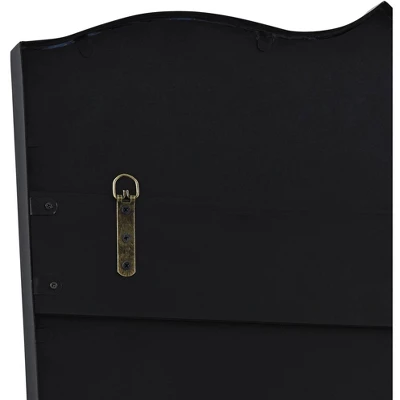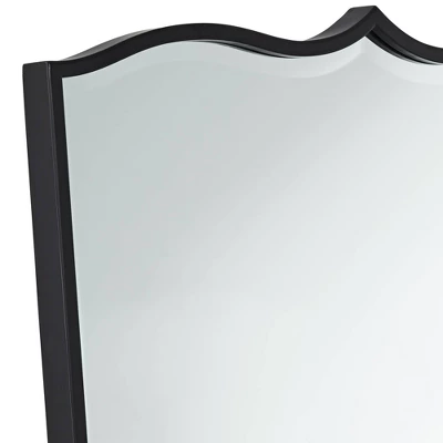 Follow the alluring silhouette of a vintage-inspired mirror with a contemporary attitude. This modern curve-top wall mirror becomes a focal point in any space with its romantic shape and satin black finish iron frame. Beveled glass maintains plane dimensionality.