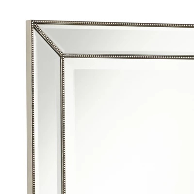 Add the finishing touch to your decor with this stunning beveled mirror. The large shape allows you the versatility to hang on a wall or lean against a wall. The beveled glass is surrounded by a double beaded trim in a cool toned Palais silver finish.