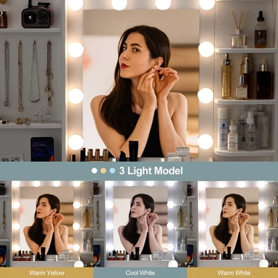 - Makeup Table with LED Light Mirror: Our Vanity Desk with Mirror offers 10 three-color adjustable LED bulbs. Choose between warm, cool, or natural light tones to achieve your desired look with precision and accuracy.