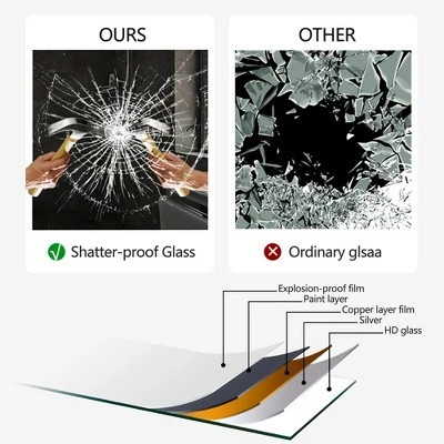 - The full-length mirror is made of a 5mm thick mirror and covered with an explosion-proof membrane.