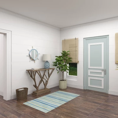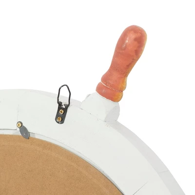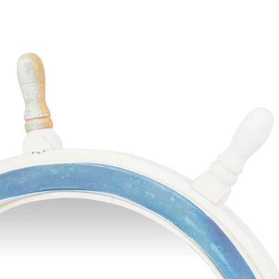 - •Coastal ship wheel mirror features a distressed look with a variety of white, blue, and orange finishes
