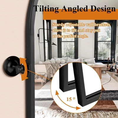 The arched tilting wall mirror comes crafted from anti-rust and sturdy metal, while the glass inside is made from shatter-proof glass. Practical and beautiful design as a decorative or vanity mirror for your bathroom. Tilting up or down to adjust viewing angle for a total view of you. You could also easily mount it on the bathroom wall.